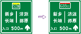 | S28长济高速调整为G3511菏宝高速入口标志调整示例 |
