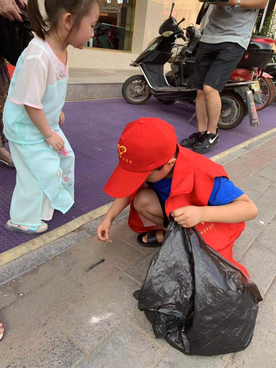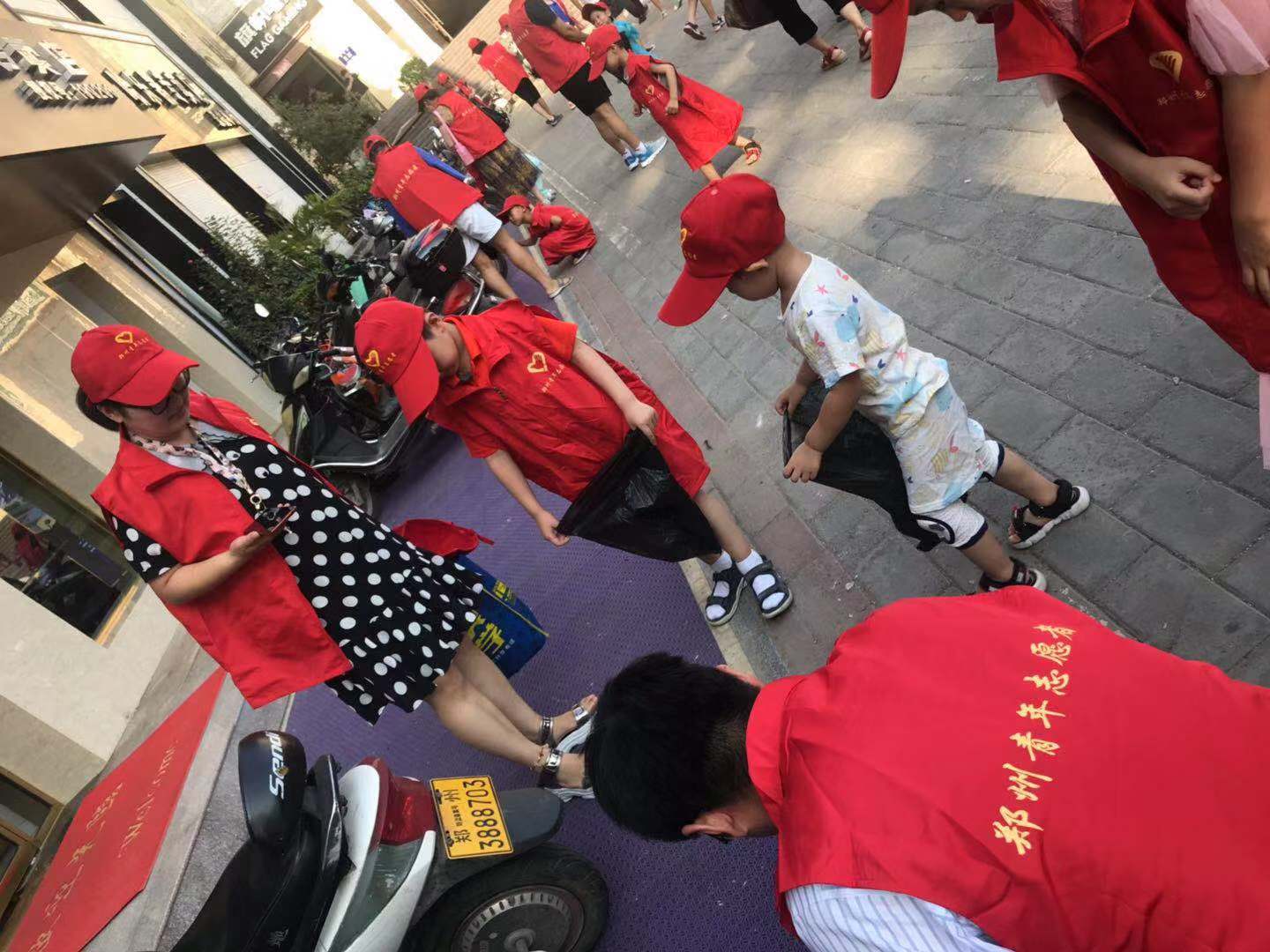 高温酷暑挡不住孩子们的满腔热情,他们身穿醒目的红马甲、头戴小红帽,与家长一起在金水路文化路交叉口街道两旁,做力所能及的志愿服务。这些小小绿城使者或自带工具,清除杂草、打扫路面卫生、捡拾烟头;或两两配合,帮助乱停乱放的共享单车归位;或路口劝阻横穿马路、乱闯红灯、上下车不排队等不文明行为;或向来往路人宣传发放文明行为条例手册等。碰到需要搀扶的老人,孩子们总是热心积极地上前帮忙。汗水湿透了红马甲,他们依旧坚守在各自的岗位上,成为街头一道亮丽的风景线,来往行人不住为他们点赞。
