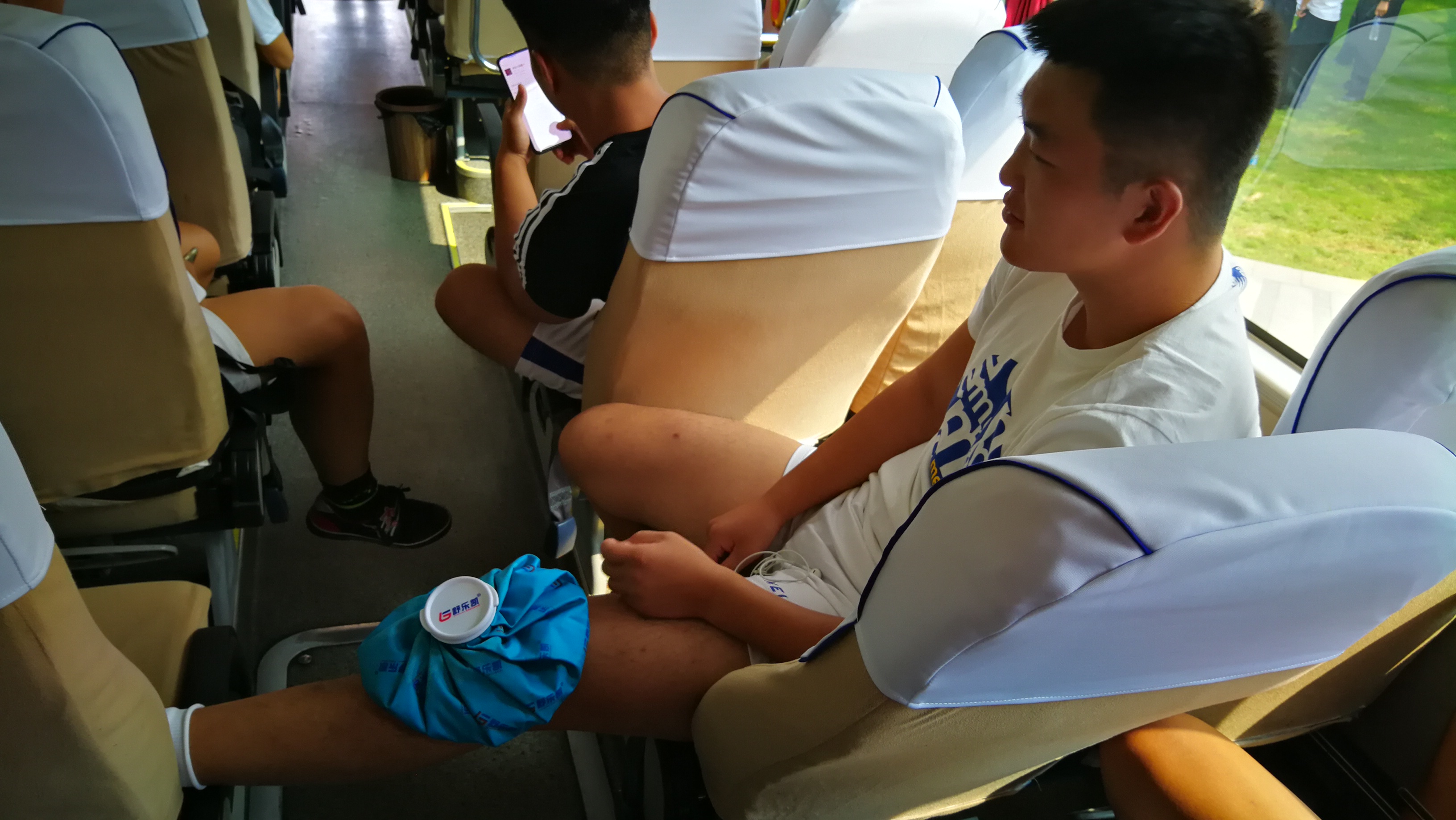 大河网讯 (记者 宋向乐)9月9日下午,河南代表团花炮队将首次亮相第十一届全国少数民族传统体育运动会。在出发的大巴车上,腿敷冰袋的运动员周志豪接受了大河网记者的采访。