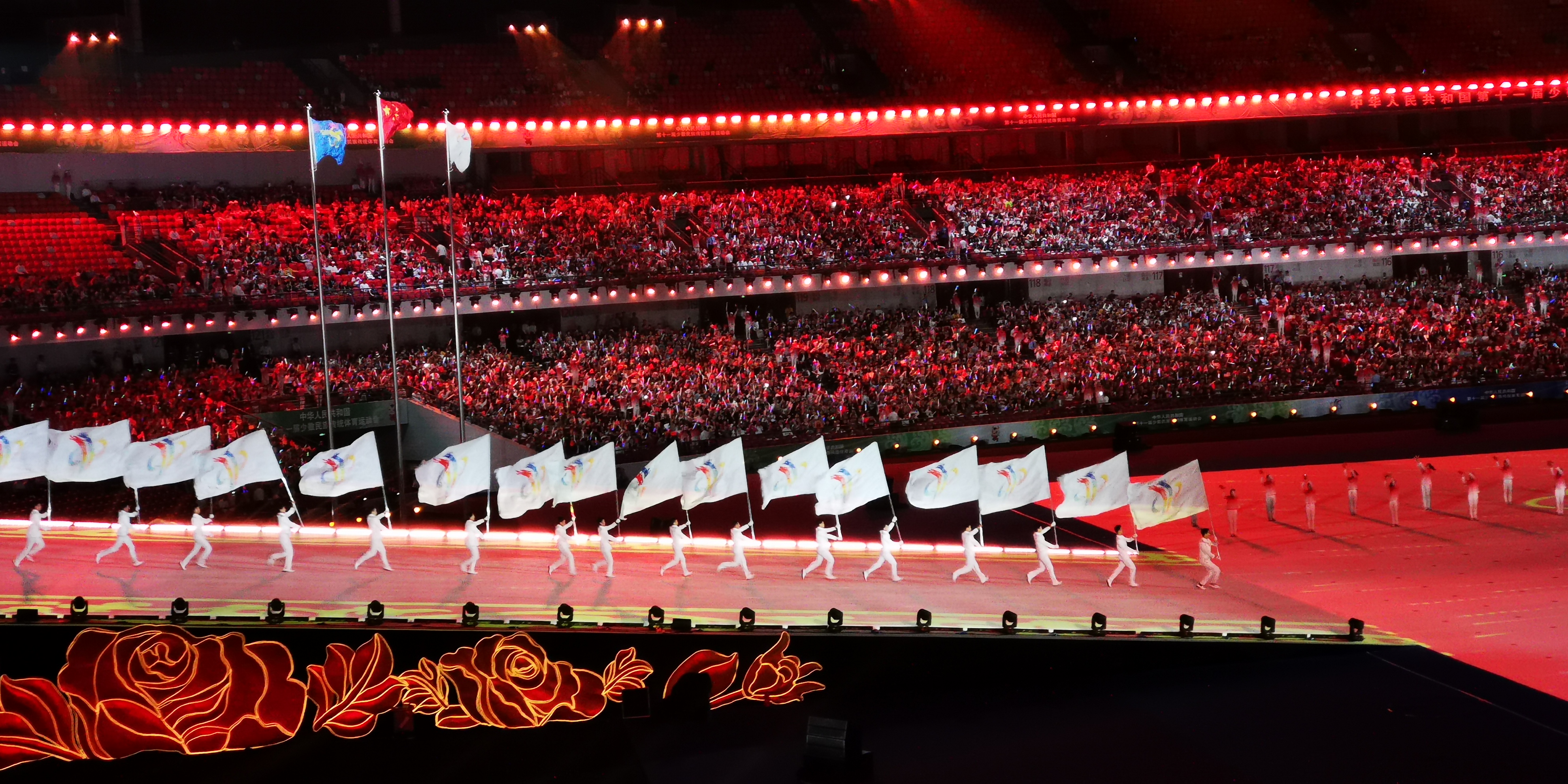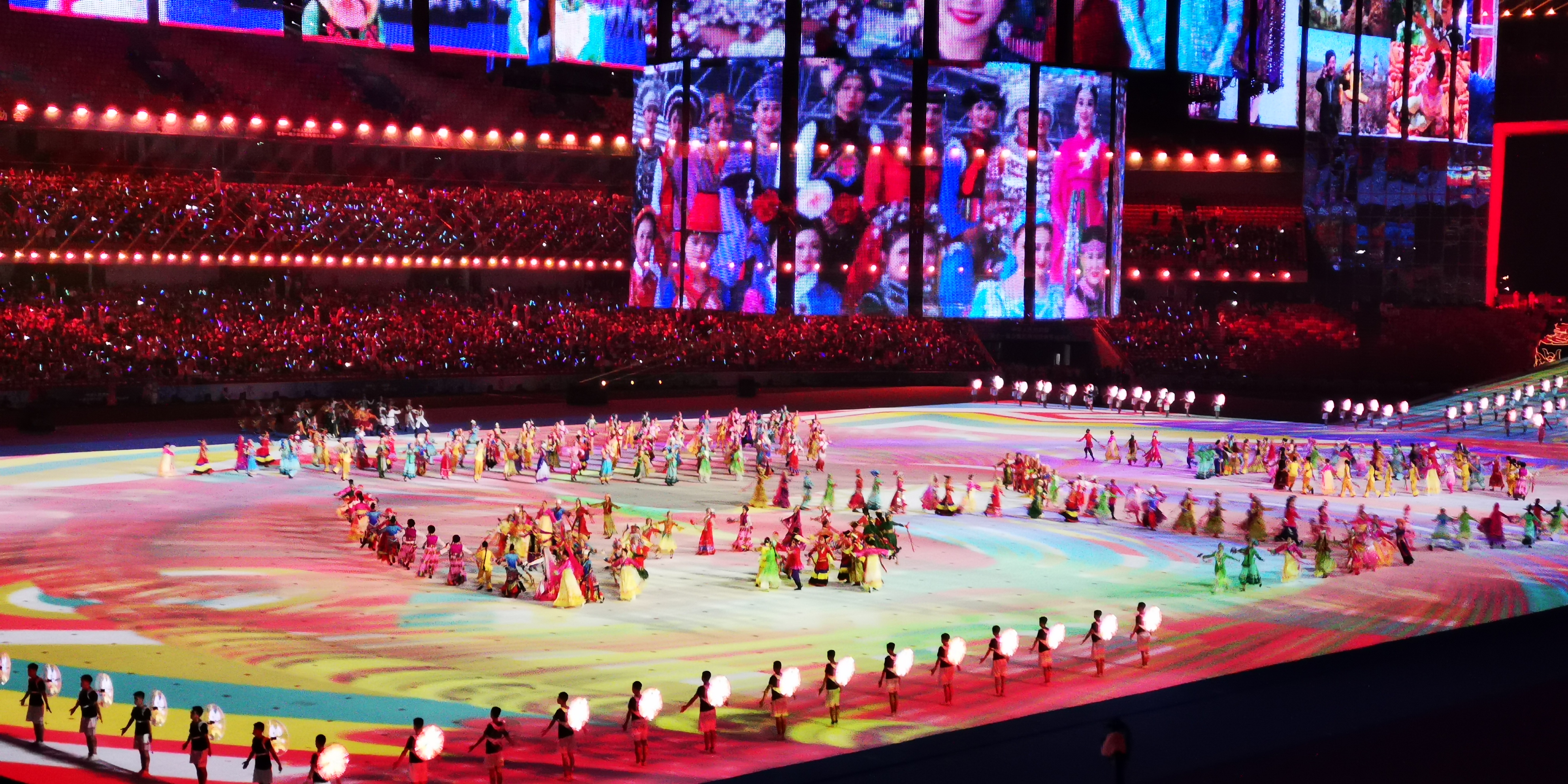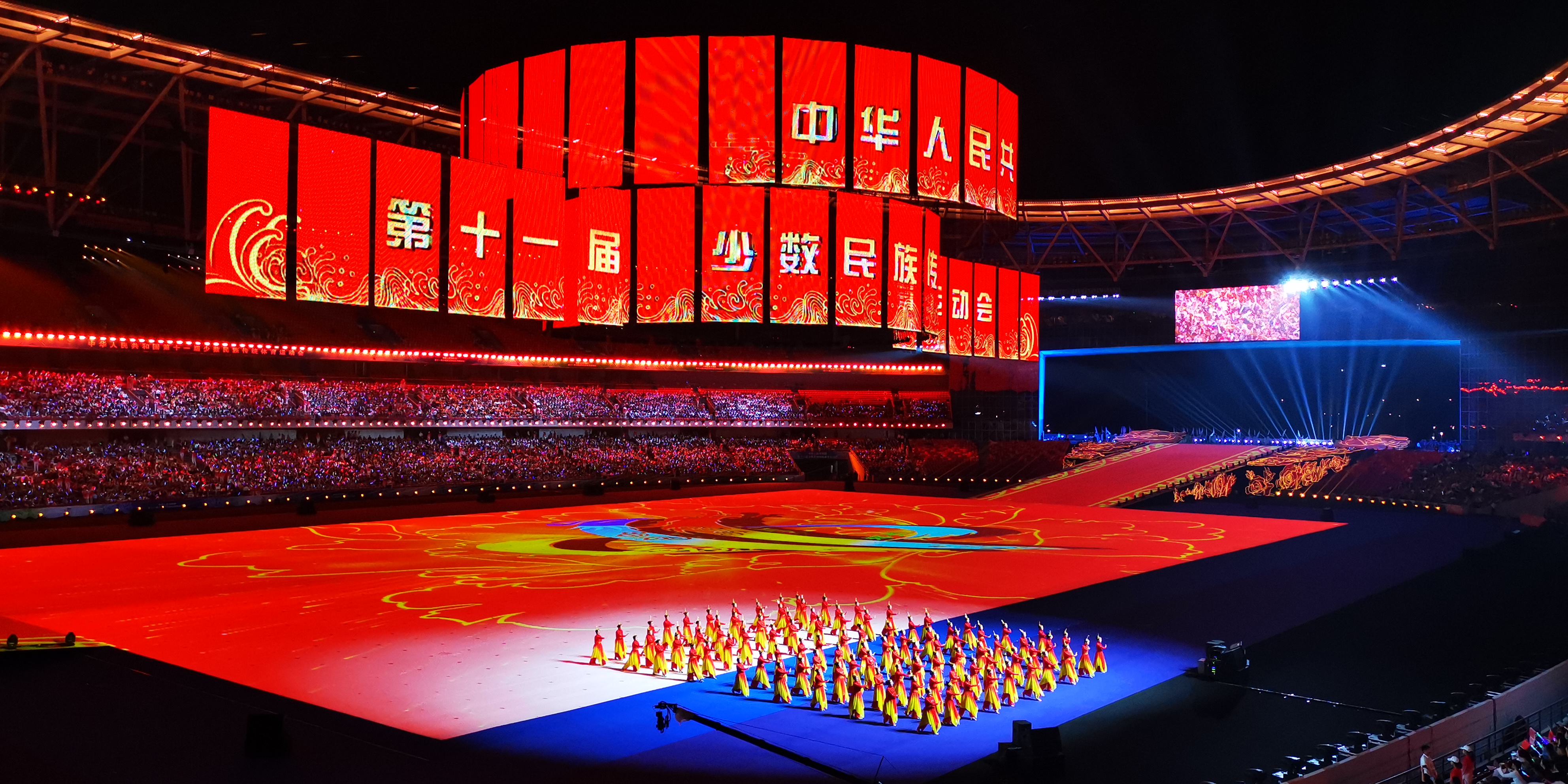 随着中华人民共和国少数民族传统体育运动会会歌响起,第十一届全国少数民族运动会圆满闭幕。