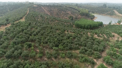 △司马光油茶园在槐店乡的6个村通过土地流转种植了2.7万亩油茶,并形成产业,实现年产值近亿元。(央视记者王波涛 潘巍拍摄)