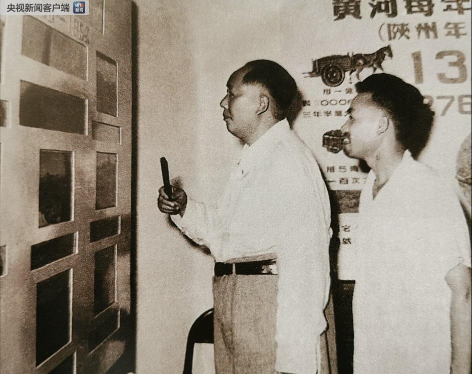 △黄河博物馆起源于1955年4月17日在郑州举办的治理黄河展览。当年7月,为配合第一届全国人民代表大会第二次会议审议治理黄河规划,治理黄河展览在北京中南海怀仁堂举办。这是毛泽东主席在参观展览。(黄河博物馆提供)