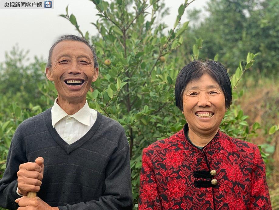 △油茶园工作人员袁明永和陈文珍。他们从2009年开始在司马光油茶园工作。春秋两季除草施肥,每天收入50~100元,采摘季节每天能收入200元左右。(央视记者张晓鹏拍摄)