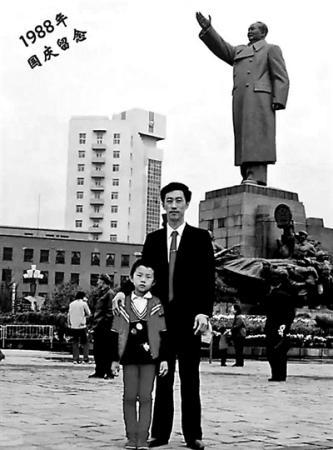 北青报记者从王彦父子的照片上看到,他们所选择的角度一直相差不大,但是随着年代的变化,他们身后的背景以及身上的着装都在发生着变化。