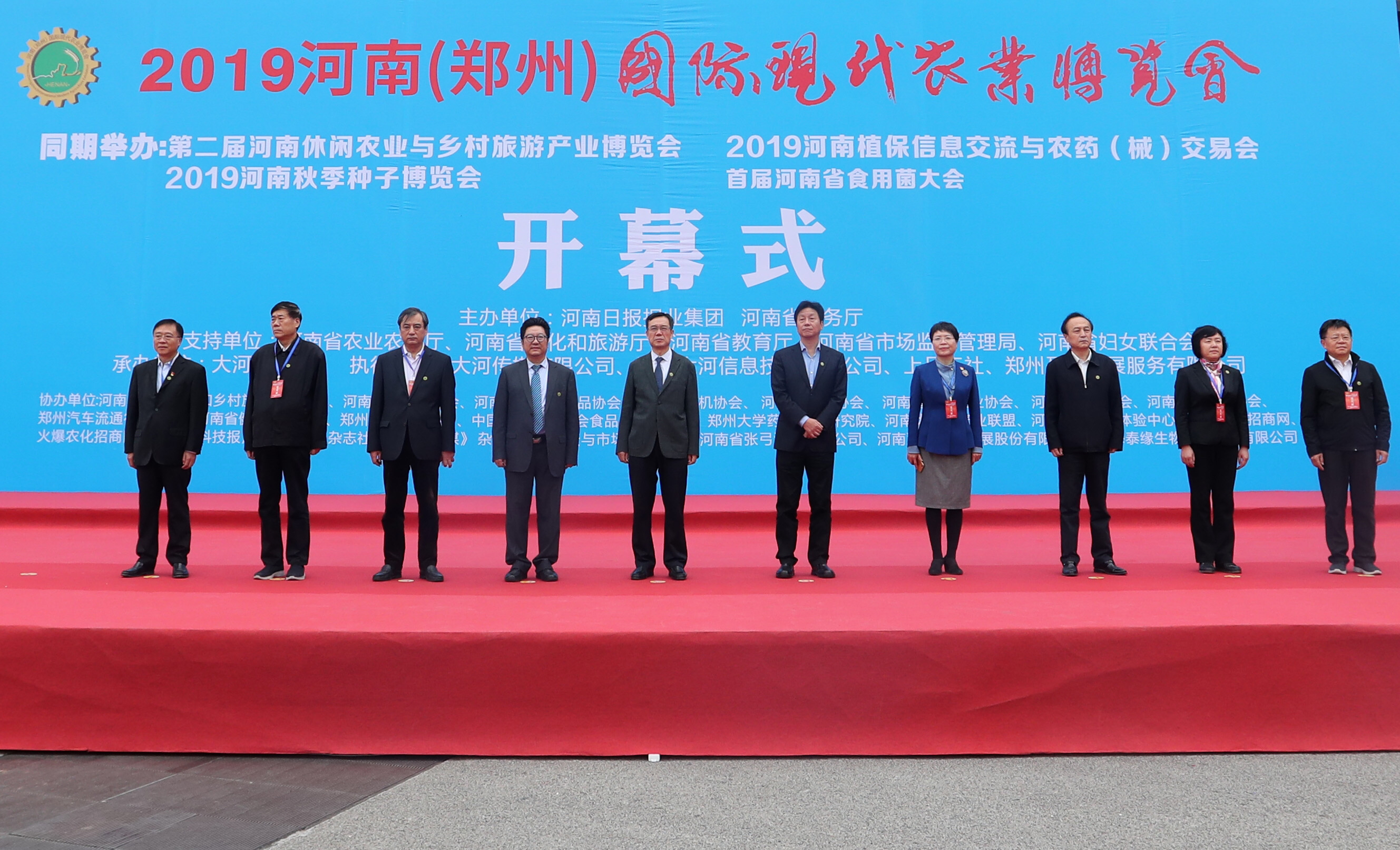 今日(24日)上午9:00,2019河南(郑州)国际现代农业博览(以下称郑州农博会),在郑州国际会展中心隆重开幕,会期10月24日—26日。河南省商务厅党组书记、厅长张延明,河南日报报业集团党委书记、社长董林,河南省农业农村厅党组书记宋虎振,河南省妇联党组书记、主席郜秀菊,河南日报报业集团总经理张光辉,河南省省委宣传部副部长赵云龙,河南省农业大学副校长康相涛,河南省教育厅科技处调研员施晓春,宁陵县县长马同和,卫华集团创始人、党委书记、长垣卫华农场缔造者韩宪保、河南省张弓酒业郑州公司总经理肖东升等领导和企业嘉宾出席了开幕式。河南日报报业集团党委委员、大河网络传媒集团董事长、大河报社社长王自合出席并主持了开幕式。