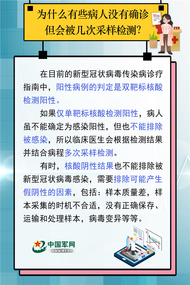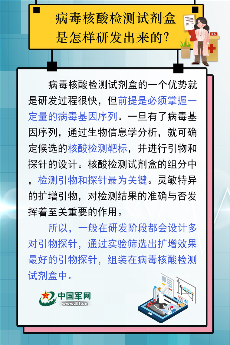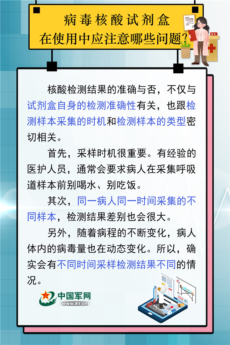 2月21日,《解放军报》第11版刊发文章《解读新型冠状病毒核酸检测》。文章强调,新型冠状病毒核酸检测,对于临床早发现、早诊断、早隔离、早治疗至关重要,是有效防控新冠肺炎疫情的关键技术支撑。同时,又提出疑问,核酸检测的原理是什么?为什么有些病人没有确诊但会被几次采样检测?我们普通人能否进行自测?军事医学研究院副研究员康晓平解答了这些问题。