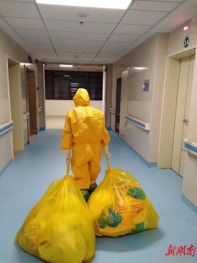 拖着两大袋医疗垃圾