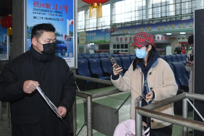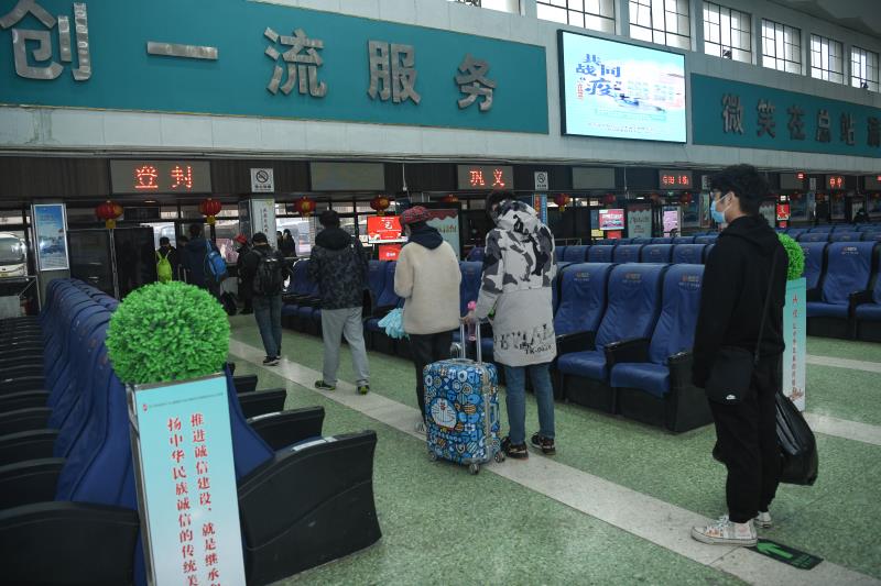 在售票大厅门口,几名旅客戴着口罩,手持身份证,排队有序进站。进站时,乘客拿出手机扫码进行健康登记,一台人体测温专用红外体温筛查仪,只要人经过仪器前方,瞬间显示人体温度。而进入候车室,旅客也十分自觉的隔开坐在椅子上等车。
