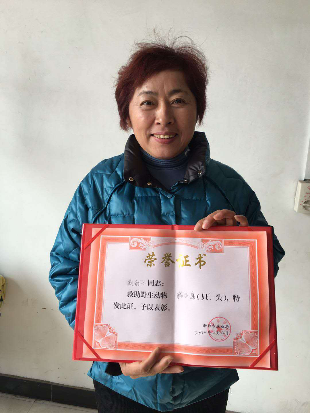 尚光铸告诉记者,对于赵女士救助野生动物的无私举动,当地林业部进行了表彰,并为她颁发了荣誉证书。