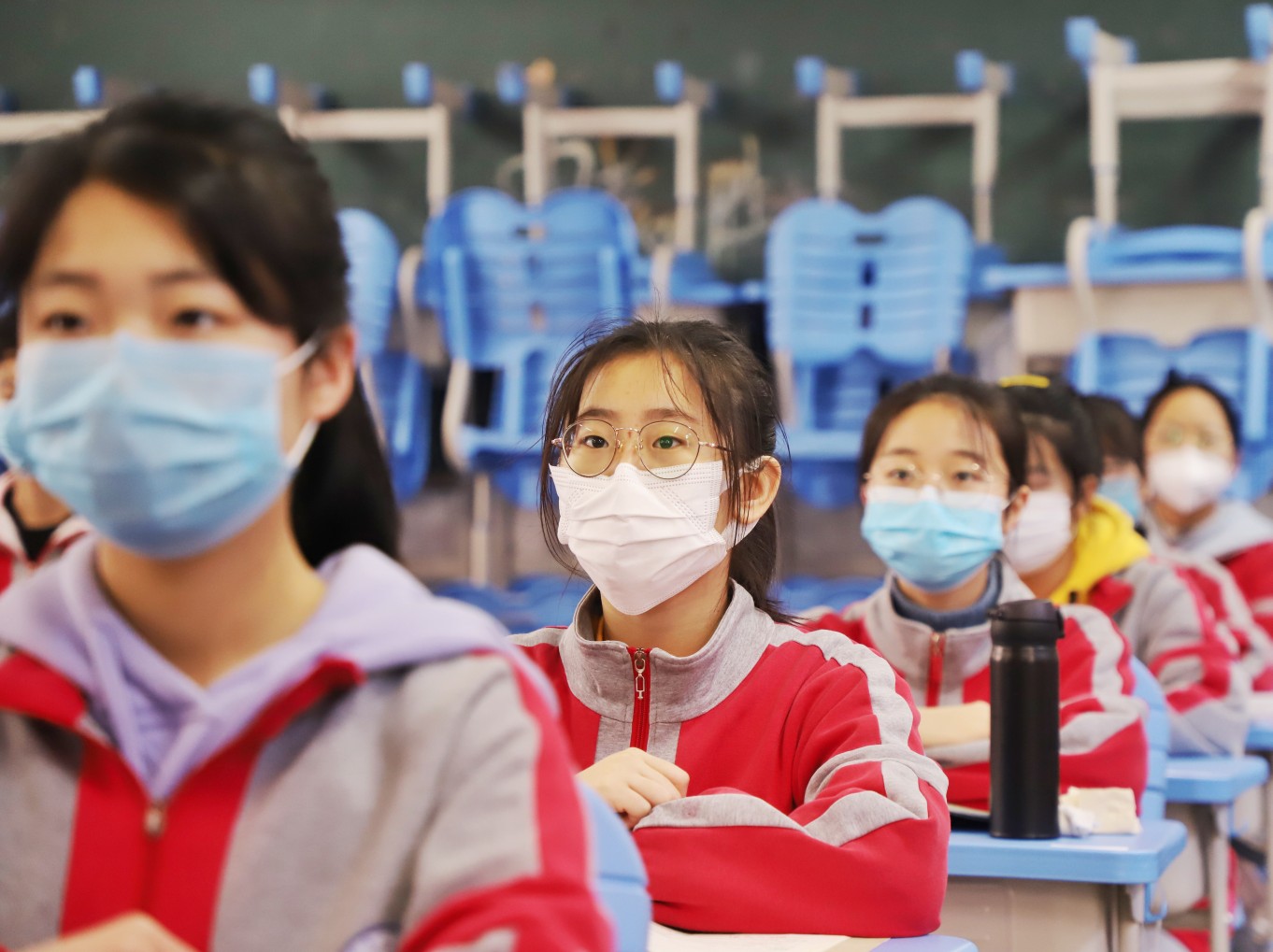 据九二(A)班老师介绍,学校实行小班教学,每个班不超过30人,每个人前后左右间隔不少于1米,单人单桌上课,减少学生接触距离。