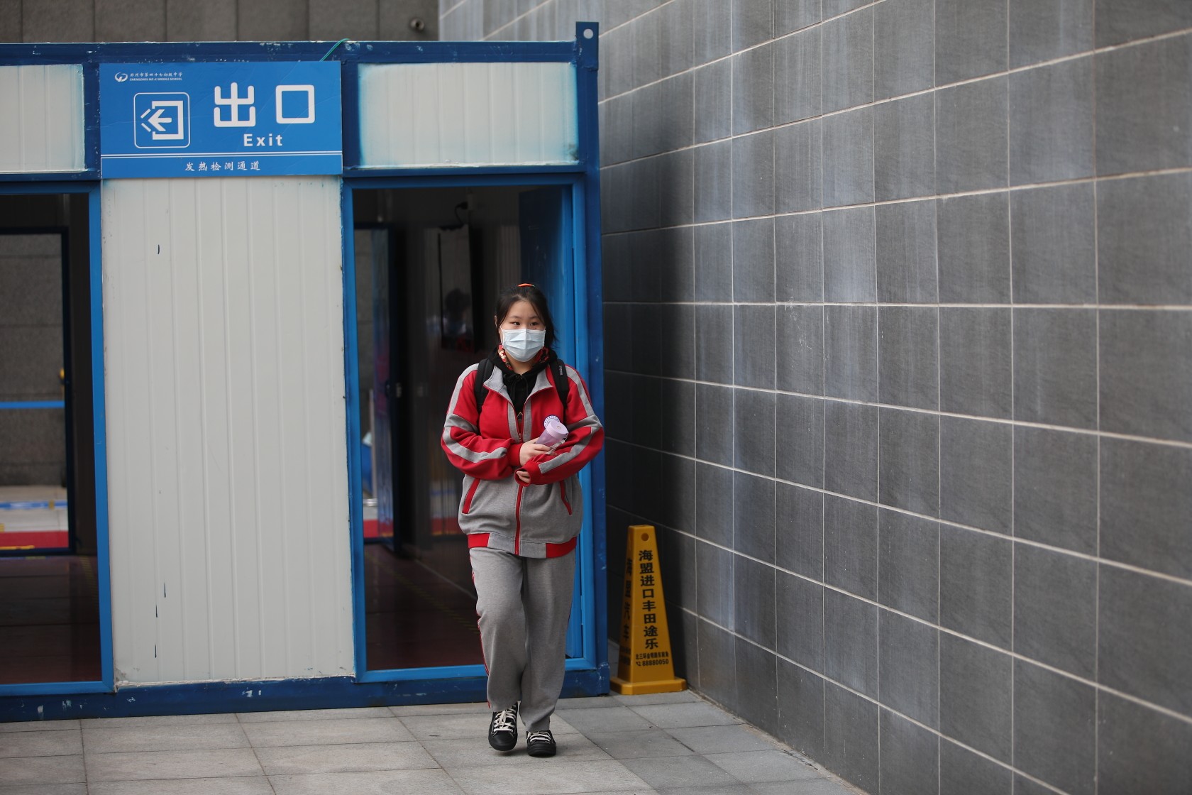 进校前,学生佩戴口罩间隔1.5米,按照标志依次进入体温测量专用通道。据介绍,如果出现体温异常者(如体温超过37.3℃),将被带到校门口指定区域隔离,并联系家长即刻带走就诊。