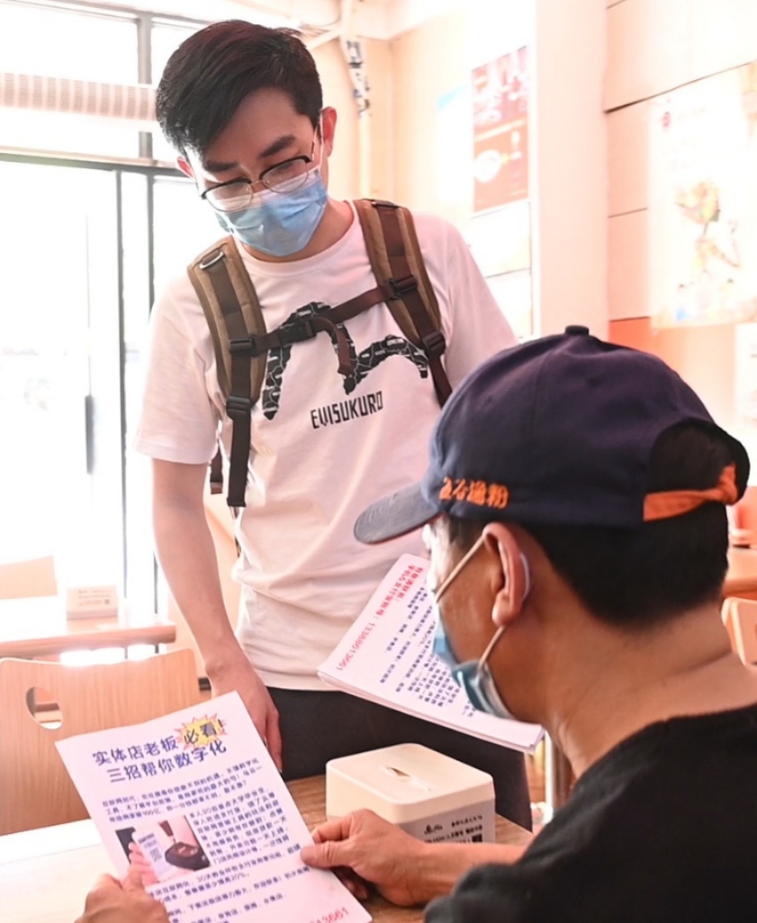 记者联系上这位名叫丁志伟的21岁小伙,他表示:“这时候上街发传单求职,就是想引起大家的关注,因为我发传单的目的是创业,做‘小店经营规划师’,帮助小店从疫情中快速地走出来。”
