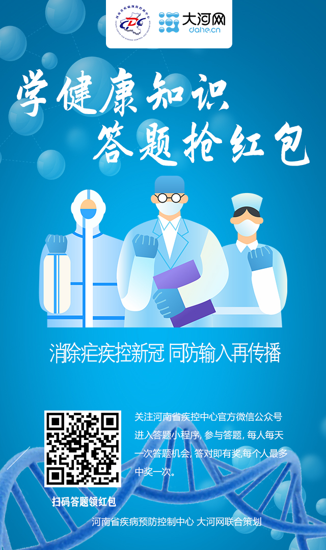 大河网讯(记者 尧青)学习健康知识,还有红包领,你没听错!4月26至30日连续5天,河南疾控喊你答题赢红包!