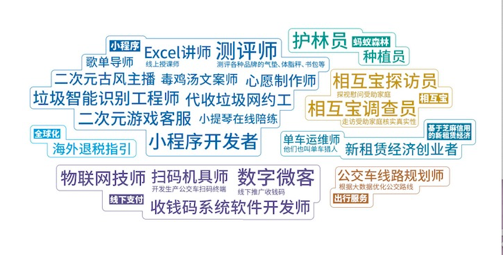 有的因数字经济而生。如50万调试安装刷脸机具的物联网技师,生产公交扫码硬件的扫码机具师,优化公交路线的大数据路线规划师,给大数据打标的标注师、垃圾智能识别工程师等。