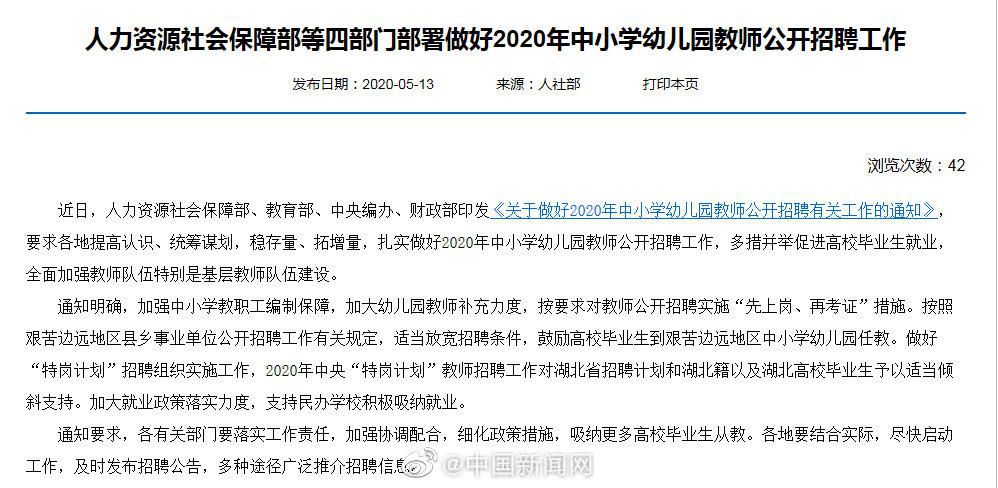近日,人社部等四部门印发《关于做好2020年中小学幼儿园教师公开招聘有关工作的通知》,加强中小学教职工编制保障,加大幼儿园教师补充力度,按要求对教师公开招聘实施“先上岗、再考证”措施。在2020年12月31日前招聘高校毕业生的,不得将取得教师资格证书作为限制性条件。