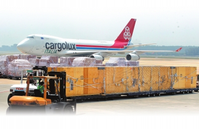郑州机场的工作人员顺利将卢森堡航空货机运来的德国机械设备卸下飞机。河南日报资料图片