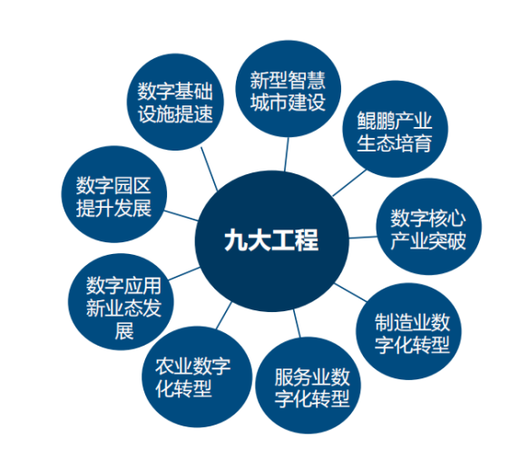 其中,他认为,应重点抓好新型智慧城市建设、鲲鹏产业生态体系、数字产业化发展、制造业数字化转型、服务业数字化转型、农业数字化转型、数字应用新业态发展、数字园区提升发展、数字基础设施建设等九大工程。