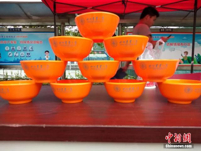 四川农业大学食堂的餐具一共有四种颜色,但学校最后选择了橘红色。杨老师介绍,橘红色的饭碗寓意着“金饭碗”,老师们希望同学们毕业后把饭碗掌握在自己手上,到哪里都有饭吃。