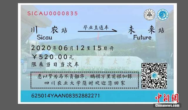 此外,毕业生离开学校时,可以乘坐后勤部门为大家开通的从学校直达成都火车西站的直通车。这趟车专为毕业生开通,凡是上车的同学都可以领取一张毕业车票,起点是学校,终点是未来。