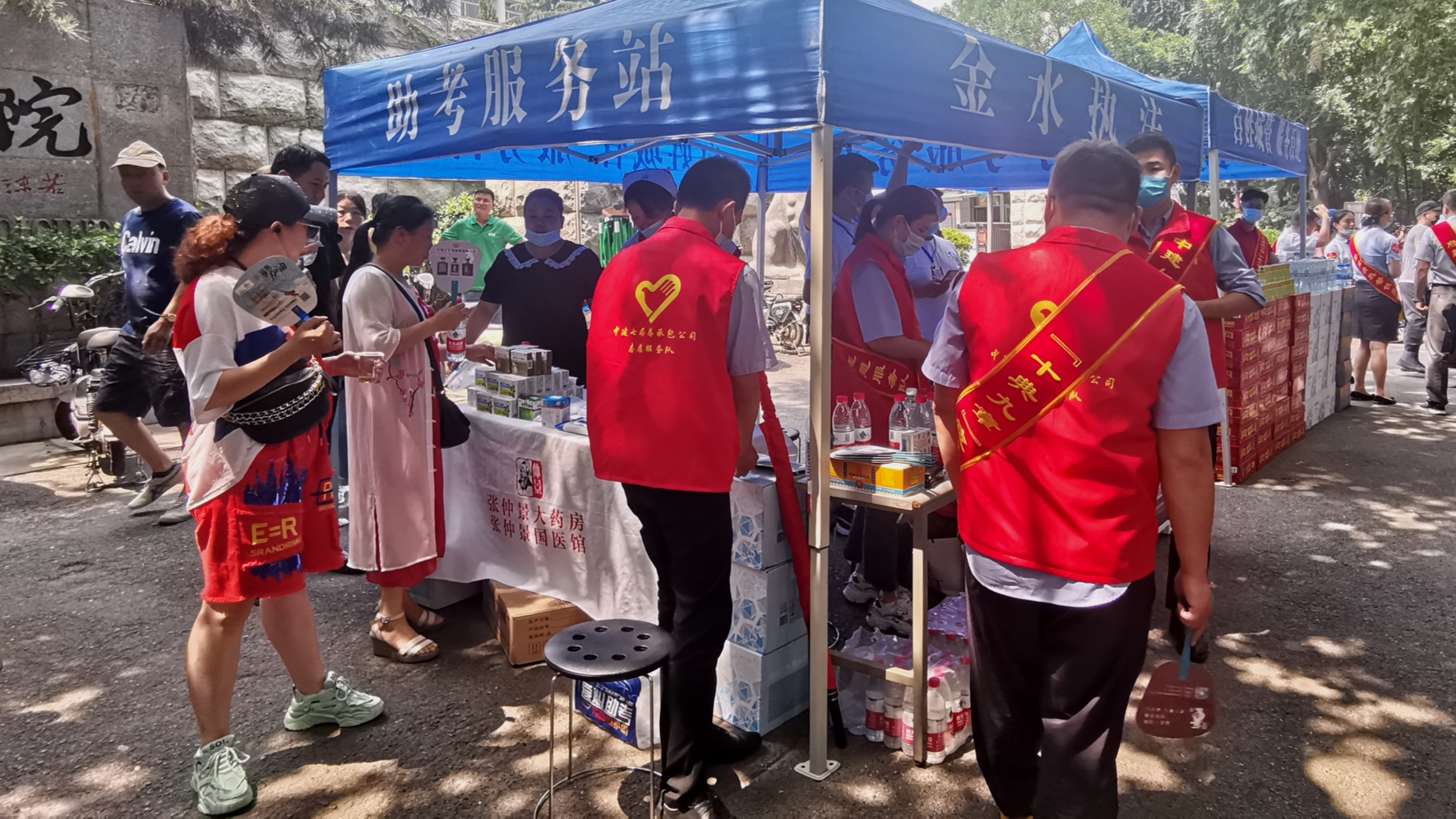 高考正值夏季天气炎热,各考点周围的志愿服务点都是一条亮丽的风景线。孙其立介绍,这是他们企业连续第10年的爱心助考行动。“今年我们准备了一些防暑药品、矿泉水以及考生用的笔、本等文具用品。由于疫情,我们也特别准备了口罩、消毒湿巾等防疫物品,希望能够帮助到需要帮助的人,也祝福所有考生都能取得理想的成绩。”