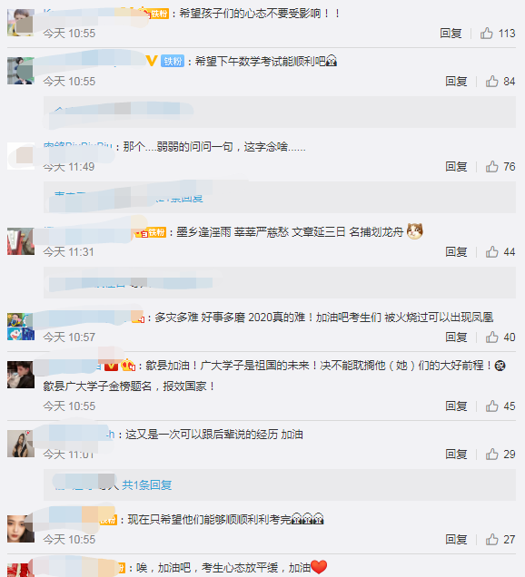 微博网友“张敏”:今年注定是不平凡的一年!祝高考的孩子们能克服困难,中国的未来是你们的!“乘风破浪”去高考,成绩必定“水涨船高”!