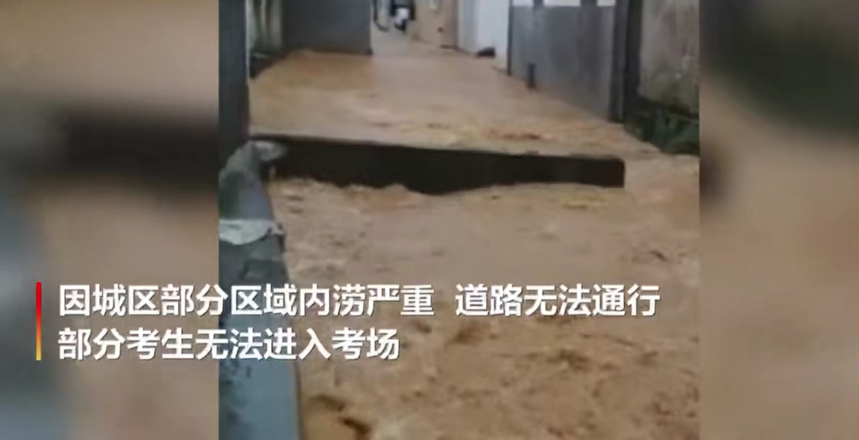 从网上的视频可以看到,当地洪水没过小轿车车顶,沿街店面淹没在水中,救援人员乘坐皮划艇押送考卷……据悉,因歙县境内多条河流水位上涨,河水倒灌进城区,导致城区多地积水严重,道路无法通行,歙县部分师生无法准时到达考场。截至7日10时,该县2000多名考生,只有500多名抵达考场。据黄山市政府消息,该县语文、数学考试取消,将延期进行。