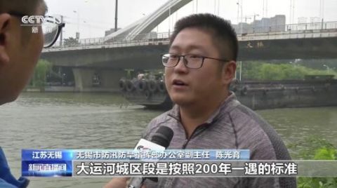 无锡市防汛防旱指挥部办公室副主任 陈光育:这个水位也是排到了我们历史的第四位,我们历史最高水位是在2017年,达到了5.32米,大运河城区段是按照200年一遇的标准,目前这个堤顶高程是6.00米,所以我们最高水位4.99米,也就是还有1.01米的余量,防汛压力还是比较大的。