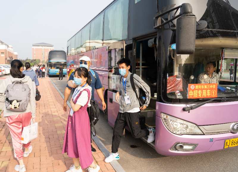 为避免考生对外接触风险,提高进入考点效率,各学校对在外考点考试的学生采取了统一乘车送考服务。早上7:30左右,在考点附近集中送考的车辆排成长队,考生有序下车,走专用通道,体温监测和证件查验后入场,成为一道亮丽的风景!市一高为有需要的考生和送考老师提供午餐和休息室,受到师生的欢迎。