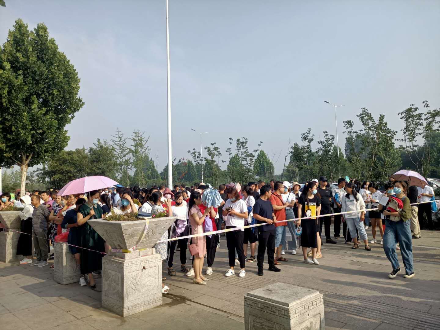 7月15日7时22分,位于濮阳城乡一体化示范区的濮阳市一高大门外约百十米远的警戒线外,早已排起了长队,熙熙攘攘的人群里站着的、蹲着的,拿着面包、喝着早茶的,全部是今年参加中招考试的考生和他们的家长们。