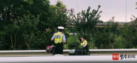 7月15日傍晚,南京交警高速六大队值班室接热心市民报警称,一辆电动自行车停在上宁杭高速的匝道口护栏边上,还有一名小孩孤零零地坐在电动自行车后座位上,边上也没有看到大人,相当危险。