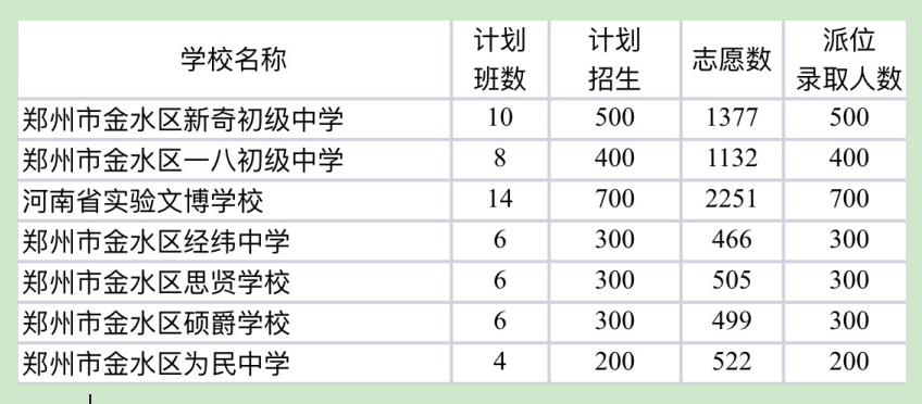 金水区7所民办初中电脑派位录取人数及报名参加电脑派位人数如下: