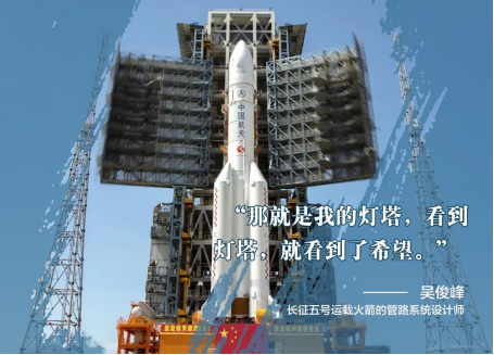 吴俊峰是长征五号运载火箭的管路系统设计师,他负责的管路就像火箭的“血管”,连接着发动机与贮箱,一旦发生问题,后果不堪设想。“长五”的管路数量,是其它火箭的2到3倍,可谓千头万绪。从装配工人到技术专家,从没有过如此复杂的管路装配经验。为了保质量,吴俊峰把自己“泡”在了火箭总装车间,常常天快亮才下班。每次加完班回宿舍的路上,眺望着振动塔上的4个大字——“中国航天”,吴俊峰脚步都会轻快起来。
