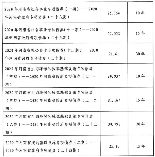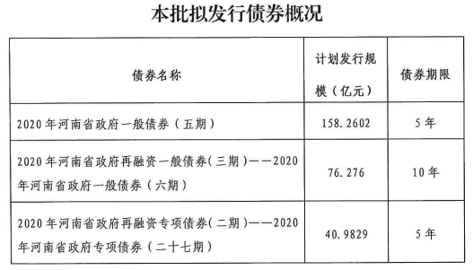 【大河财立方消息】8月6日,记者获悉,2020年河南省政府一般债券(五至六期)和专项债券(二十七至三十四期)信息披露文件公布。