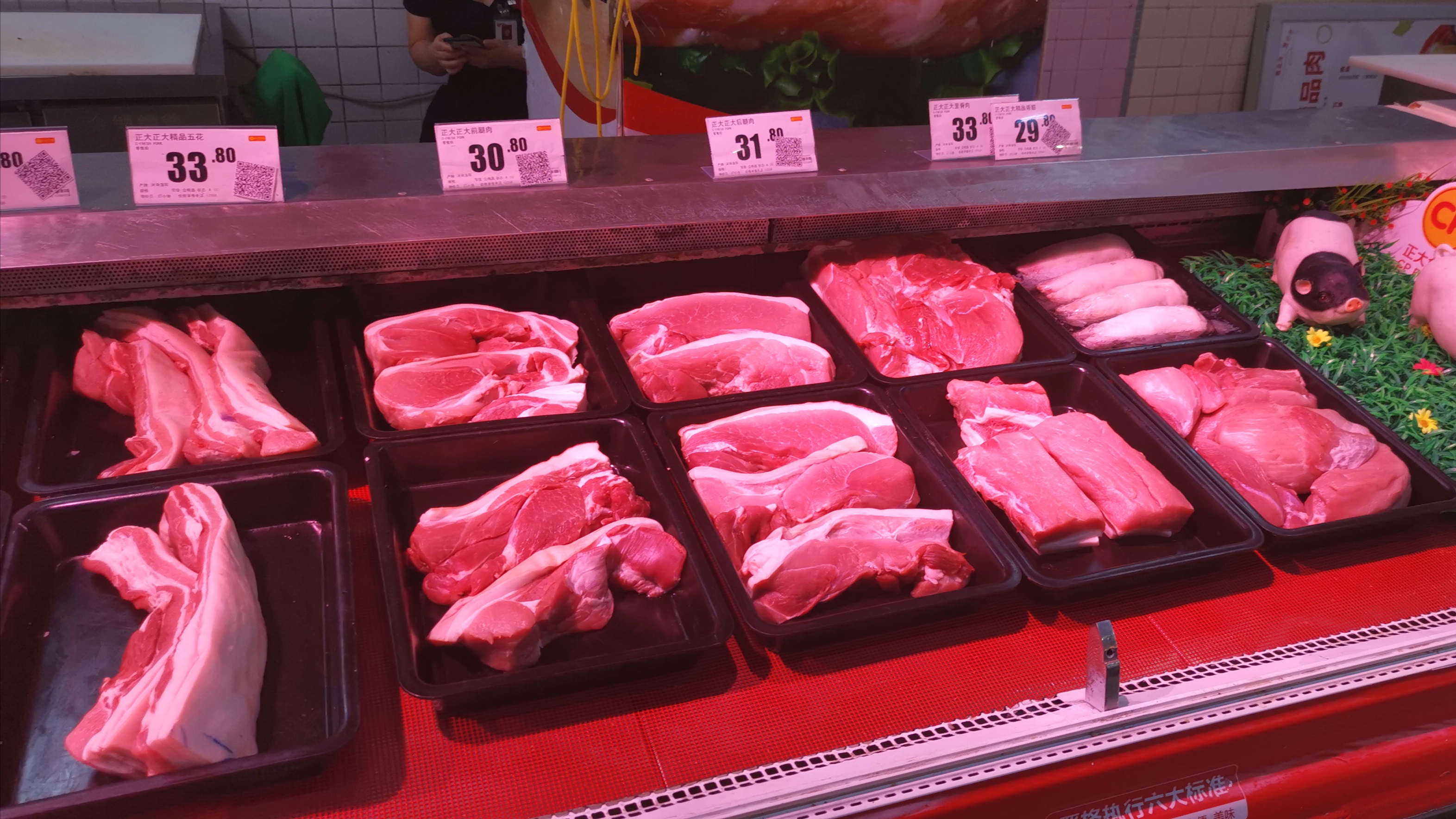 记者在附近的一家生鲜超市看到,猪肉品类相对较丰富,价格在27元到36元之间。该区域工作人员李占领表示,这几天价格相对稳定在这个范围,变化不大:“四五月份价格降过一阵儿,最低卖到了每斤21元,六七月份价格又上涨了,生意还是受一定影响的。”