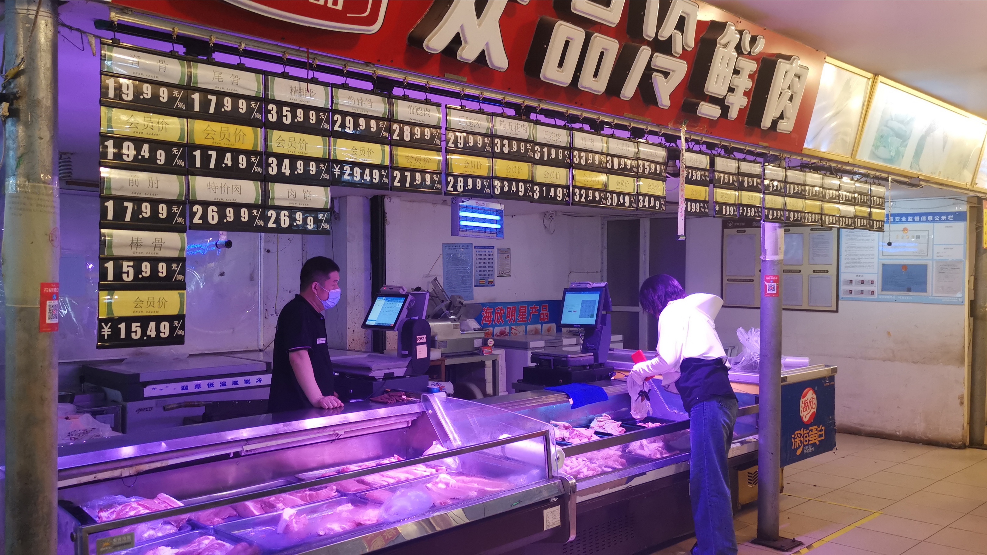 排骨每斤30元、五花肉每斤30元......“有不少人来这儿看看价格,问两句就走了,肉价太高了,生意很不好。”老板李远杰告诉记者,按照以往正常情况,加上餐馆的订单,他每天能卖出近200斤的猪肉,如今,一天零售的销量也就在30斤左右。