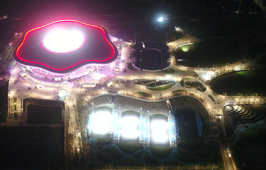 此外,项目还力图打造一处夜间打卡场地,为市民献上一场美丽的灯光秀。据王冲介绍,在体育照明方面,主场馆、副场馆、训练场、练习场分别安装了92个、92个、112个、64个体育照明灯,满足夜间赛事需求。园区216个路灯、65处景观照明、937个点光源和150套投光灯让夜晚下的“生命之树”色彩变幻、璀璨夺目。