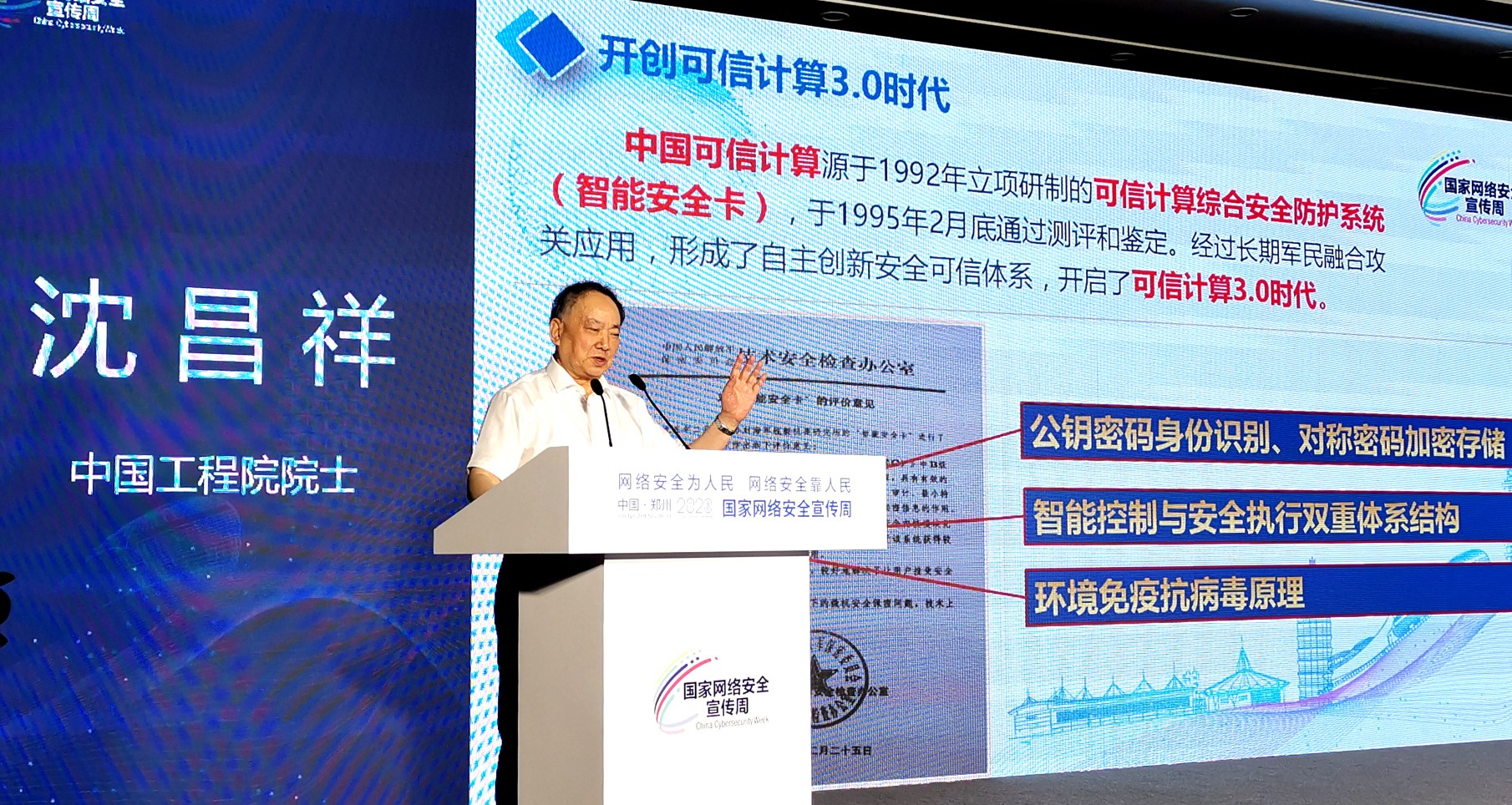 大河网讯(记者 莫韶华)9月15日下午,以“新动能、新安全、新出行”为主题的2020国家网络安全宣传周网约车安全保障分论坛在郑州黄河迎宾馆举行。如何构建网络安全主动免疫保障体系?中国工程院院士沈昌祥分享了他的理念。