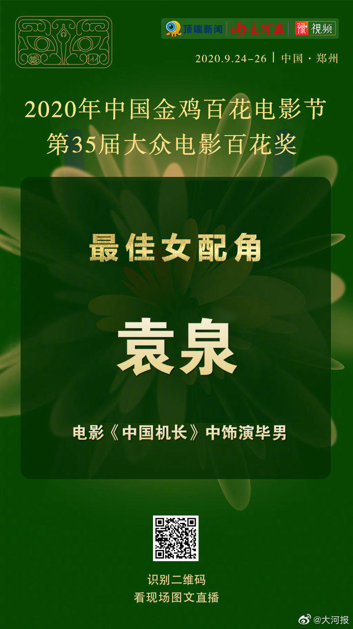 袁泉获奖感言:感谢组委会,感谢各位评审,再次荣获非常激动。感谢中国机长出品方,感谢导演、监制、编剧和剧组所有的工作伙伴。还要感谢川航刘传建机长,毕楠乘务长和英雄机组的所有同仁。感谢我的家人!