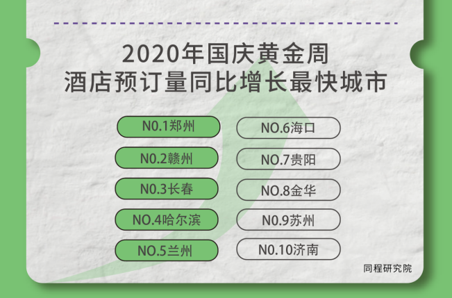 同程艺龙发布的大数据显示,过往8天假期,在酒店预订量增速最快的城市中,郑州排在了全国第一位,酒店预订量同比增长超50%。有大量河南游客涌向了较热门的长线游目的地,如三亚、厦门、成都、重庆、西安、大理等城市。不少游客为保证出行顺利,提前两周就开始预订国庆期间的客房。