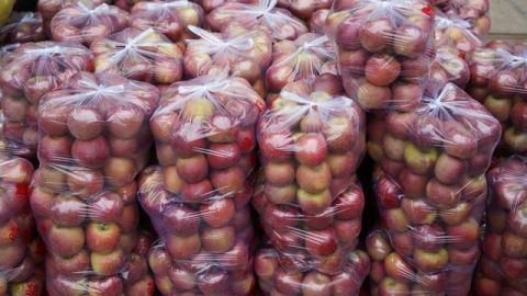 家住苏甲的李大娘的孙子在洒渔镇中学上学,为了照顾好孙子她来到洒渔镇陪同,平常就给孙子做做饭。虽然已经60岁,但她总是闲不住想找点零活做,于是,她来到了苹果交易市场中心给苹果装袋,按照每袋4层、10个一层的规格给交易好的苹果装袋,每袋6、7毛。