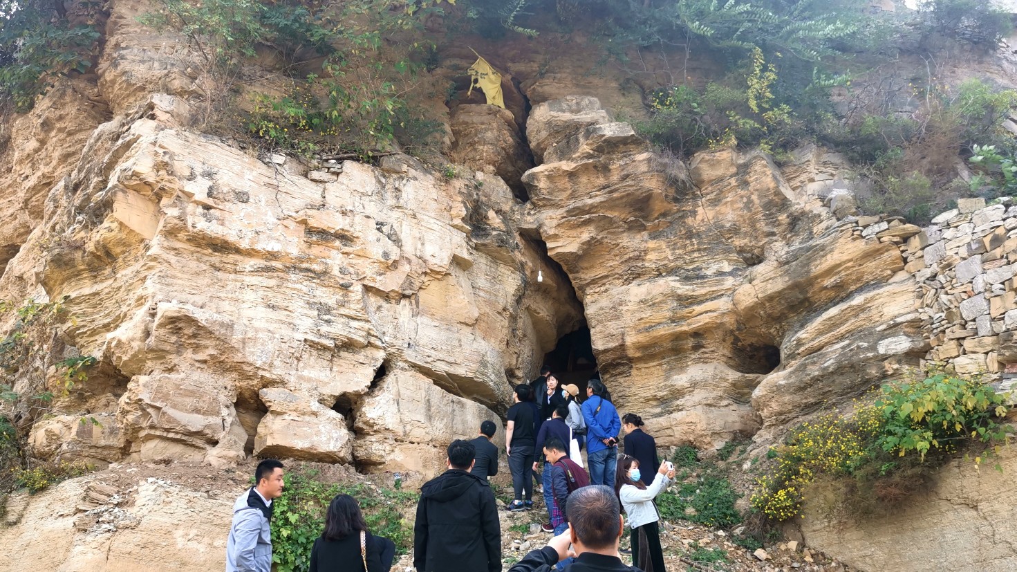 大河网记者在现场看到,塘口崖壁山石自西向东呈30度斜坡多层叠压,地貌奇异,俗称为“千层山,万层石”。崖壁中部有自然形成的多个洞窟和岩缝,其中最有名的是北窟大壶天和南窟龙王洞。白寺塘口也是开采花斑石的主要采石点之一。