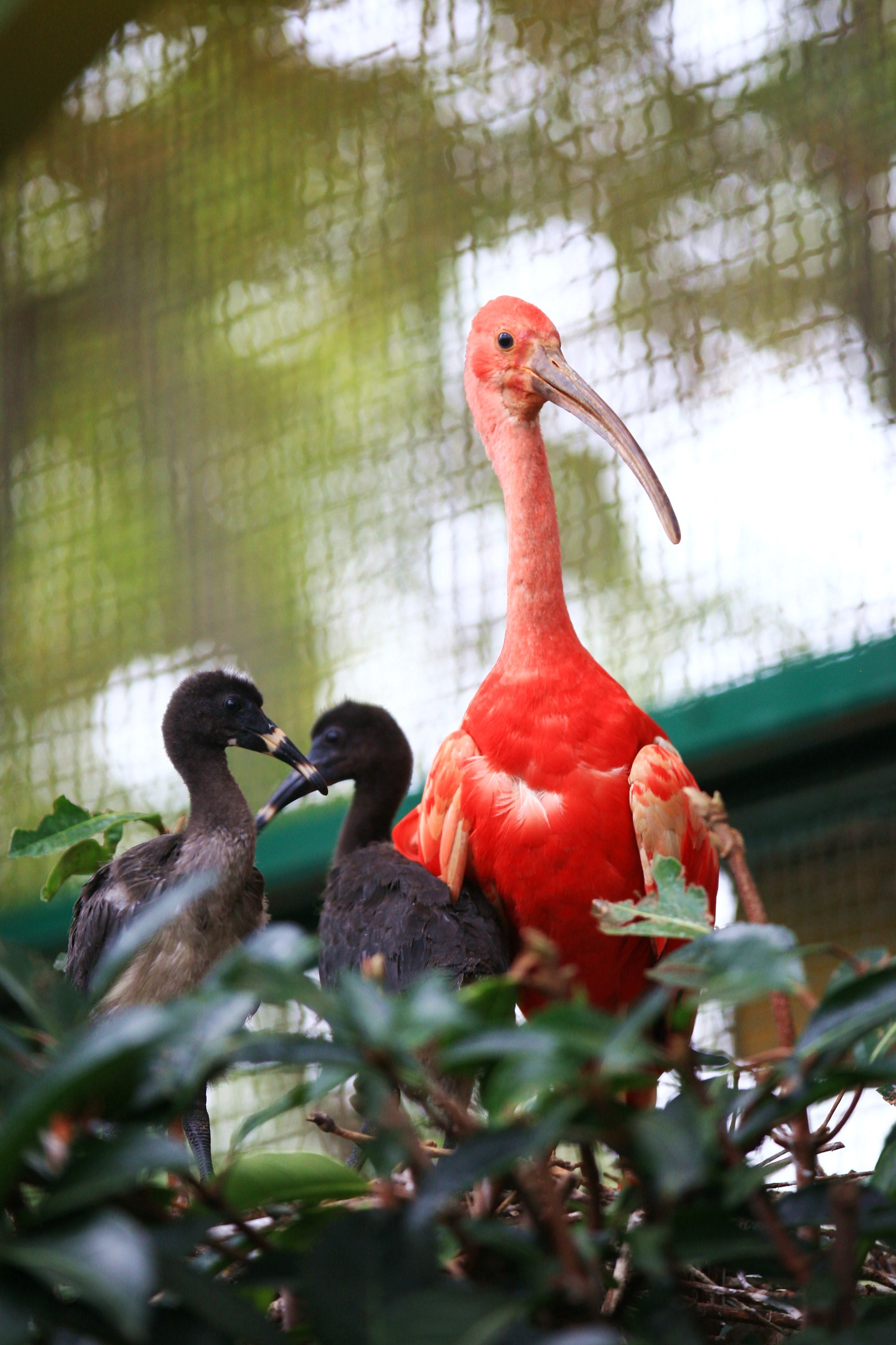天时地利人和兼备之后,美洲红鹮们安全感倍增,陆陆续续筑巢搭窝,准备迎接下一代了。红鹮妈妈是在9月9日开始产卵并开始孵化的,9月30日,4只红鹮宝宝终于破壳降生,成为红鹮大家族的一分子。