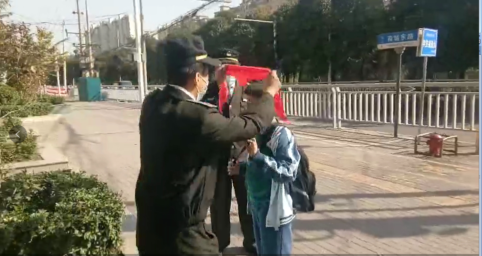 张宪成赶紧安慰男孩:“别急别急,叔叔这就去给你买一条红领巾,送你去学校。”随后,他带着男孩走进附近的一家文具店,买了一条新的红领巾帮孩子戴到脖子上。此时,上课的时间已到,见男孩面对难色,队员直接将他送到学校。