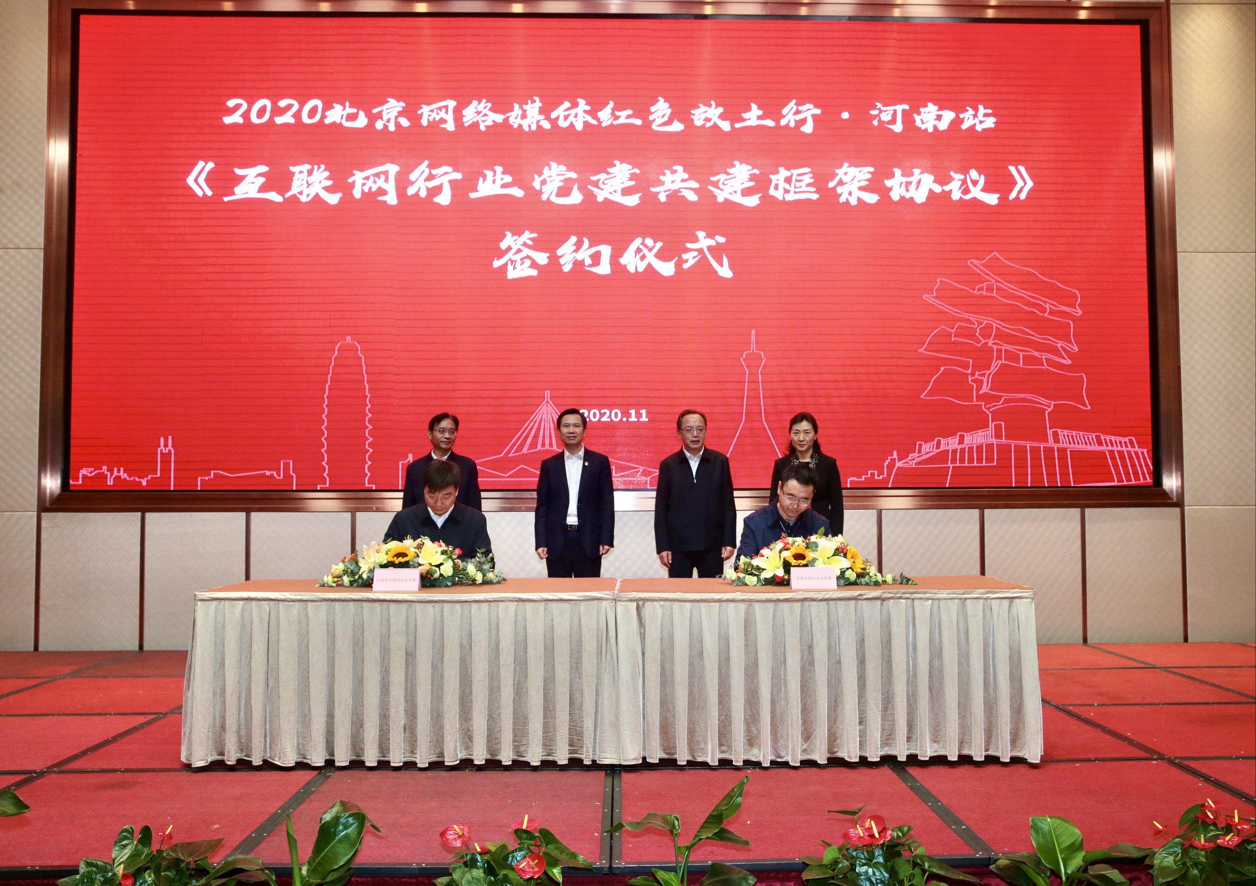 为认真落实全国互联网企业党建工作推进会议精神和中央网信办关于加强互联网党建工作的部署要求,在启动仪式现场,首都互联网协会党委和河南省互联网行业党委在充分协商的基础上,共同签署了《京豫互联网行业党建共建框架协议》,就加强京豫互联网行业党建工作,传承红色基因,弘扬黄河文化,共同实施“五大行动”达成了共识。