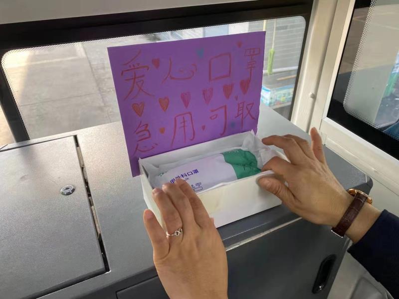 就这样,郑州B32的车长们都积极响应,纷纷从家中拿来口罩,汇集起来足有上千个。王宁专门又在车上制作了爱心口罩盒,上面写着“爱心口罩,急用可取”的字样。