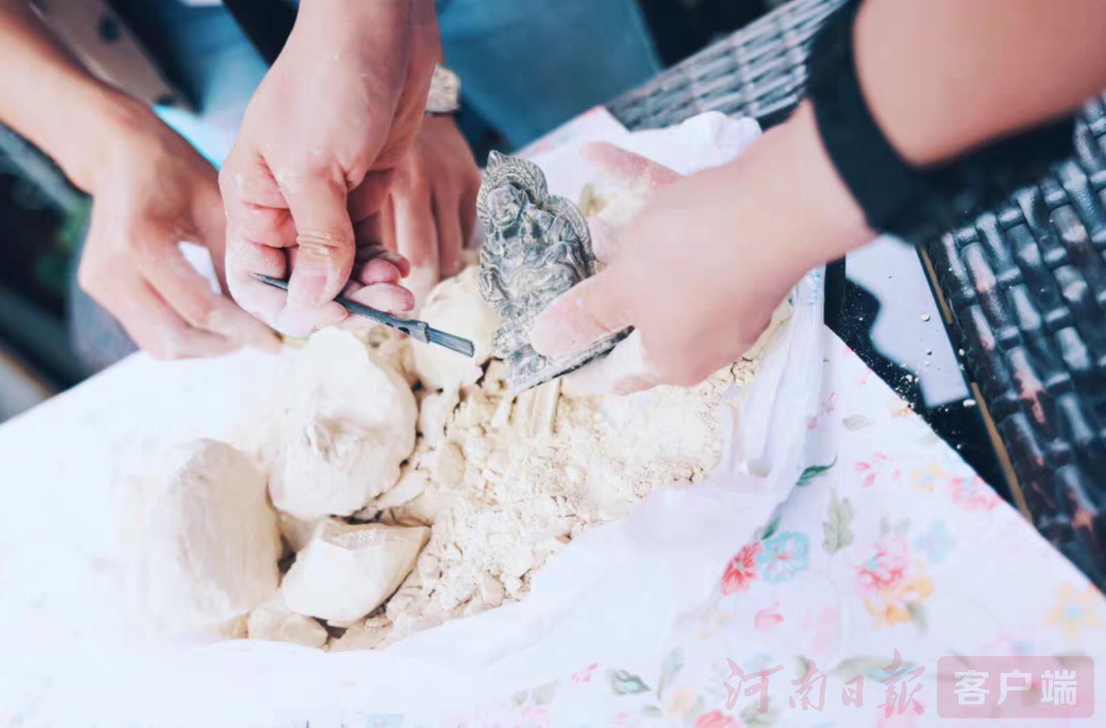 “事实上,这款考古盲盒的一大亮点是它的土壤,跟外面售卖的同类型产品的石膏性质是截然不同的。这个是可以对土壤进行分析判断,来确定埋藏“宝物”的位置。”豫博文创工作人员刘维说。