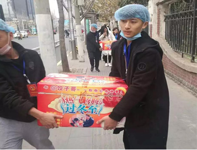 为了能让环卫工人们在冬至吃上一顿热腾腾的饺子,索克物业、二七区马寨镇政府以及“河南饺子哥”组成的志愿者团队,提前两天就开始采购食材、和面盘馅,足足准备了三百多斤爱心饺子。