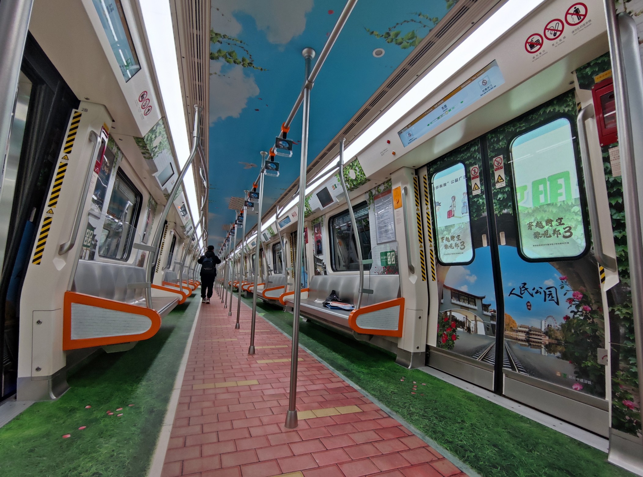 走进郑州地铁4号线乘车大厅,可以看见4号线全线通过色彩、构成、艺术点缀等多种设计表达形式,打造以“科技蓝”为特色的线路,不仅车体外部以蓝色为主色调,还融入了青铜鼎纹状的元素,呼应商都历史文化。