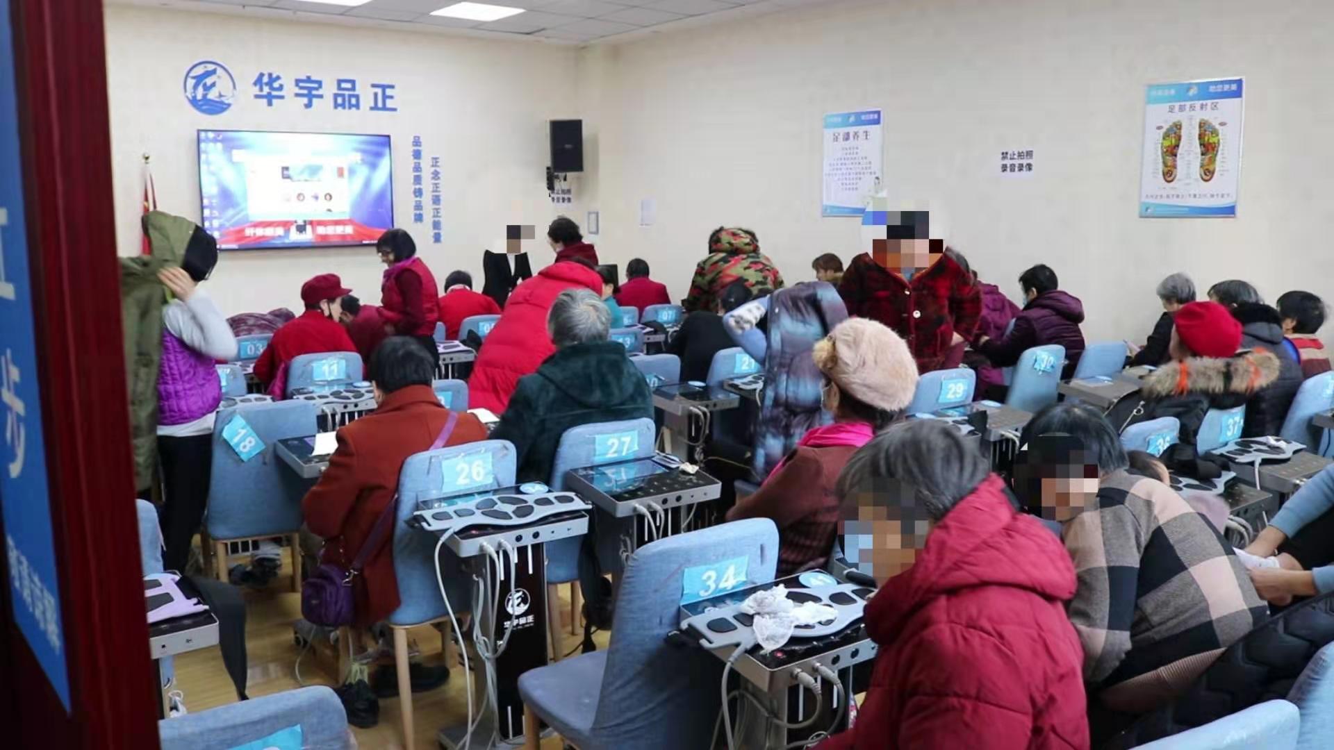 售卖纤体康美管理仪的瘦身馆,位于高新区万科城祥瑞苑一号楼外侧一楼商铺。周边商户介绍,每天都有不少老人前往该店铺。崔阿姨则表示,这家店现在每天举办10场免费体验活动(需提前领取入场券),每场活动约有46人参加。