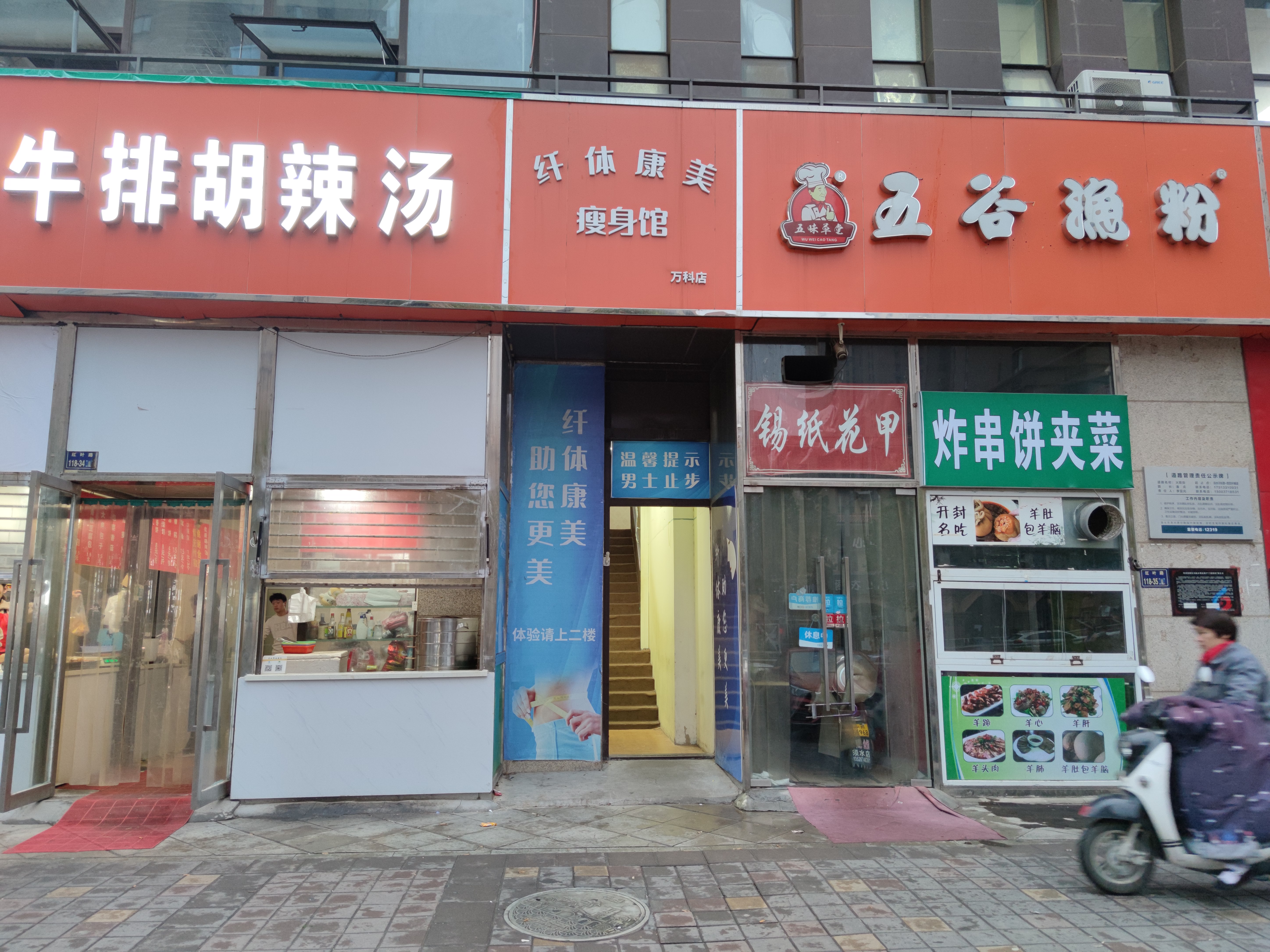 纤体康美瘦身馆位于郑州高新区万科城祥瑞苑一号楼外侧一层商铺